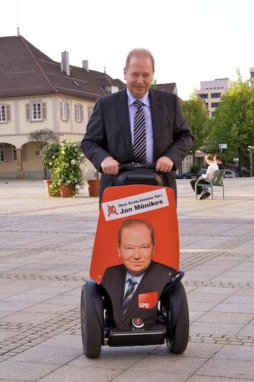 Die Aktion des Kandidaten dient jedoch nicht nur der Wahlwerbung, sondern steht im Zusammenhang mit den politischen Bemühungen der SPD, Deutschland zum „Leitmarkt für Elektromobilität“ zu entwickeln. Mönikes „Bis zum Jahr 2020 sollen nach dem Willen der SPD eine Million Fahrzeuge mit Elektroantrieb auf unseren Straßen fahren.“ Der Segway mit dem er auf den Straßen und Plätzen unterwegs ist, ist hierfür ein frühes Beispiel.