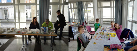 Um 15 Uhr starteten wir mit den ersten Bastelwilligen. Die Kinder durften sich zunächst ein Bastelset auswählen. Danach konnten die Bausätze direkt an den vorbereiteten Tischen gestaltet, montiert und dekoriert werden. Die anwesenden Kinder hatten viel Spaß und tolle Ergebnisse als sie anschließend noch das herrliche Wetter vor dem Rathaus genossen.