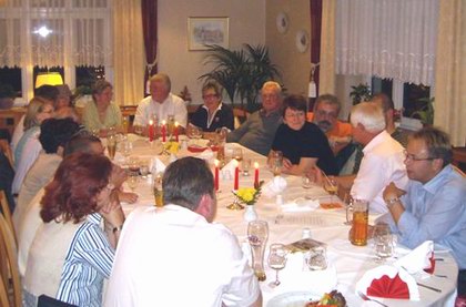 Angeregte Gespräche beim gemeinsamen Abendessen im Hotel „Kyffhäuser“ in Großhartau